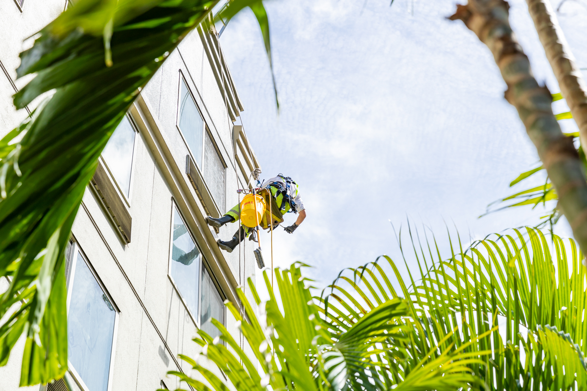 We sweep up trash, debris, dirt before any job we do, if that’s trash chute cleaning, power washing or window cleaning.